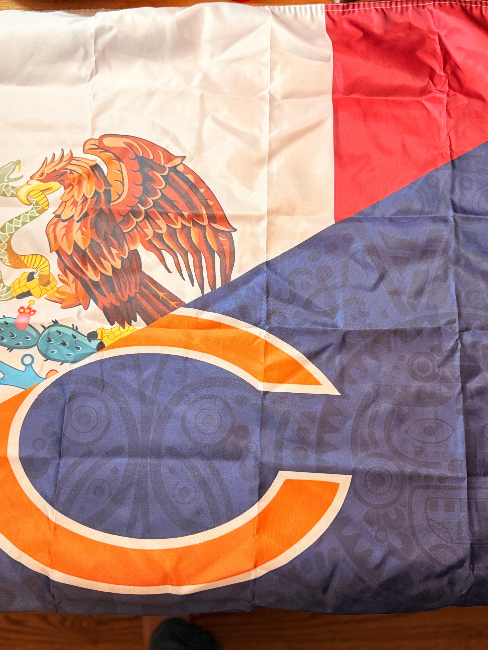 The Los Osos Azteca Flag is a bold statement piece designed for those who proudly represent Chicago and Mexican culture in one powerful banner. Featuring iconic Chicago colors blended with the strength and symbolism of México, this flag was created for tailgates, watch parties, garages, and anywhere pride belongs on display.